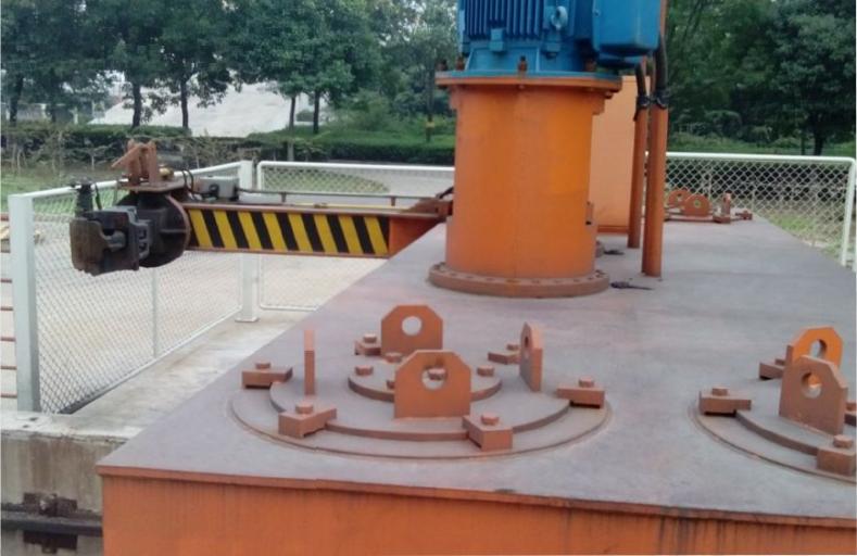 铁路检车要求空调机必须带有摘钩装置。空车调车机车体上布置液压站,通过液压站提供压力油,在电磁阀的控制下,驱动摘钩油缸的伸缩,完成开钩、闭钩的动作,从而实现空调的自动摘钩。